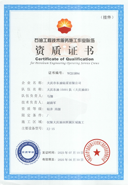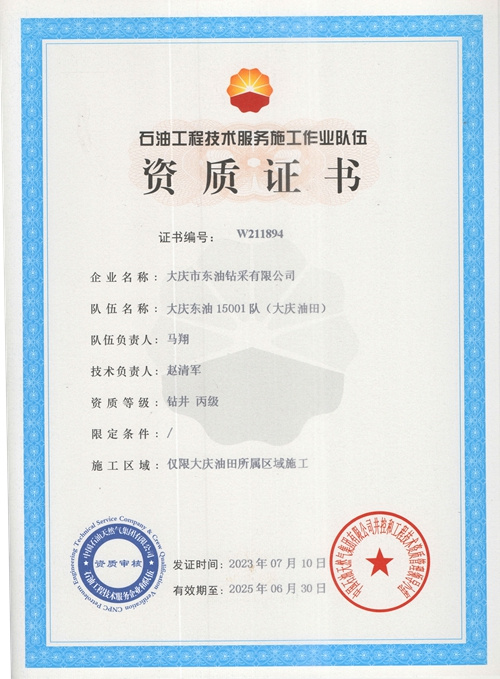 大慶東油15001隊(duì)(大慶油田)資質(zhì)證書(shū)