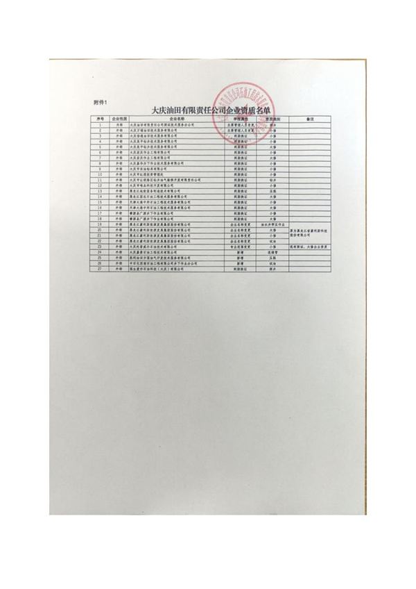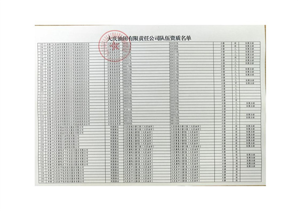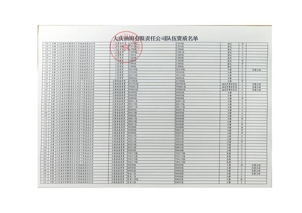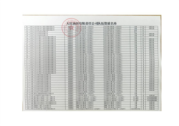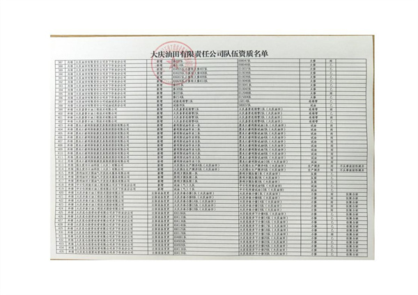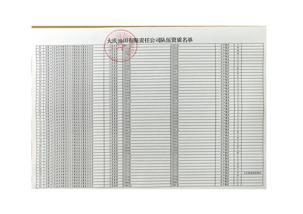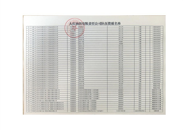 大慶東油15001隊(duì)(大慶油田)資質(zhì)證書(shū)